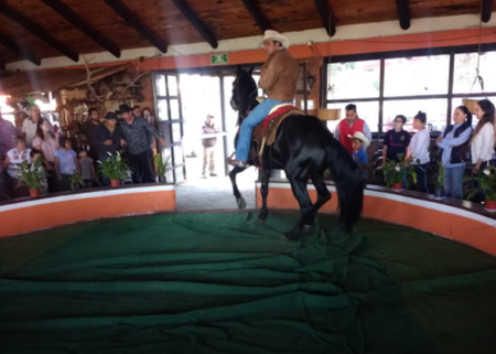 Con ocho hectáreas y media de superficie y 2 000 metros cuadrados de construcción, este magnífico rancho cuenta con Un Lienzo Charro, un Casino Restaurante, 18 caballerizas, una capilla, una planta purificadora de agua, una casa con tres recámaras, un lago de una hectárea aproximadamente, dos albercas grandes, , ocho manantiales, cabañas de descanso y árboles frutales.