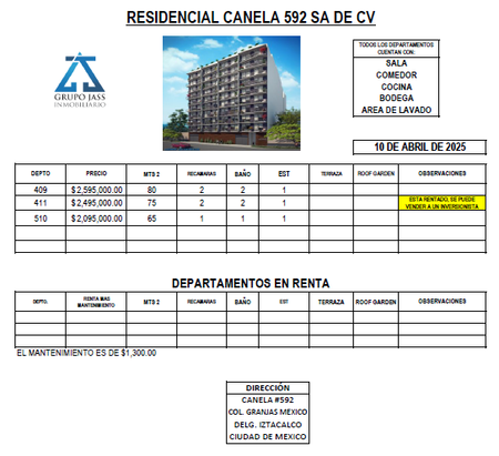Canela, Col. Granjas México, Deptos. en Venta ¡¡¡