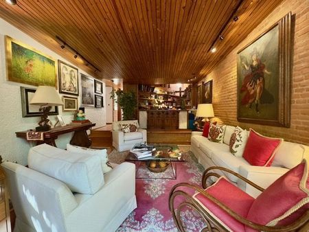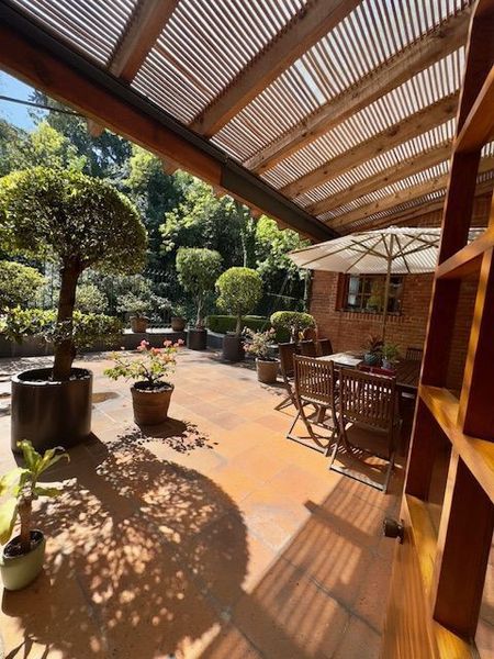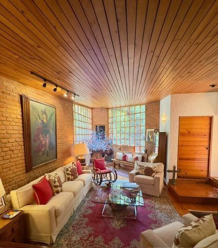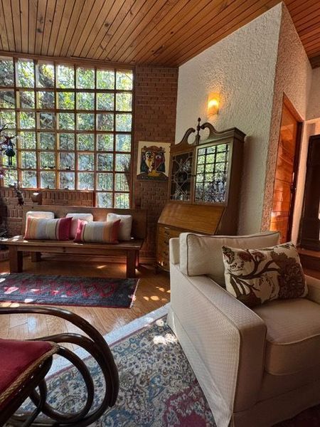 ESPECTACULAR CASA CREACIÓN DEL PRESTIGIADO ARQUITECTO FÉLIX SÁNCHEZ. HERMOSAS VISTAS ARBOLADAS. ESTÁ EN UN CONDOMINIO DENTRO DE CALLE CERRADA CON CASETA DE VIGILANCIA (DOBLE FILTRO DE SEGURIDAD) SOLO 10 CASAS. SALA CON CHIMENEA Y DESPACHO. EL COMEDOR SEPARADO, AMBOS CON SALIDA A LA TERRAZA PRINCIPAL Y AL JARDÍN. TIENE UN FAMILY ROOM JUNTO A LA COCINA MUY AGRADABLE Y AMPLIO. LA CONSTRUCCIÓN ESTÁ PRÁCTICAMENTE EN UNA PLANTA (LA RECÁMARA PRINCIPAL Y UNA SEGUNDA EN P.B.) Y EN PLANTA ALTA, TENEMOS DOS RECÁMARAS MÁS CON ESTUDIO (SALA Y ÁREA DE TRABAJO) Y TERRAZA DE 30 M2. CUARTO DE SERVICIO CON BAÑO. Y COMO UN SÚPER COMPLEMENTO ADICIONAL A LA CASA, Y TOTALMENTE INDEPENDIENTE, HAY UNA OFICINA (DESPACHO) DE 160 M2 CON RECEPCIÓN, COCINETA, ÁREA DE TRABAJO, BAÑO COMPLETO, ENORME BODEGA, ÁREA DE CHOFER CON MEDIO BAÑO Y ZONA DE MÁQUINAS (BOMBA CISTERNA, ETC.). ESTA OFICINA SE PODRÍA CONVERTIR MUY FÁCILMENTE EN UN DEPARTAMENTO INDEPENDIENTE YA QUE TIENE EL BAÑO COMPLETO Y COCINETA. LA PROPIEDAD CUENTA CON PANELES SOLARES. GARAGE TECHADO PARA 5 AUTOS. EL CONDOMINIO TIENE UN JARDÍN COMÚN DE 800 M2 APROXIMADAMENTE CON ÁREA DE ASADOR Y BAÑOS.
