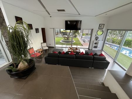 La casa cuenta con lavandería, cuarto de servicio, estacionamiento para dos coches, un bungalow adicional con baño completo, jardín, alberca y terraza con asador y baños para invitados.