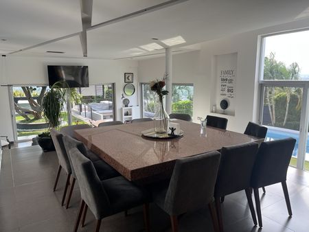 Los espacios grandes distinguen a esta residencia que cuenta con sala y comedor en desnivel, una amplia cocina con estufa a gas y otra eléctrica.