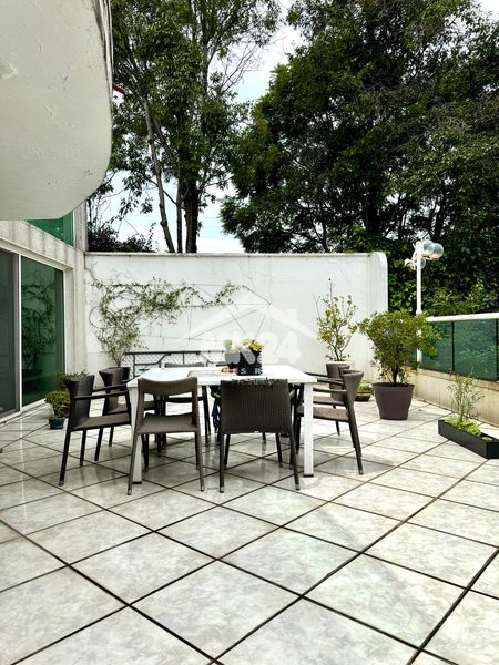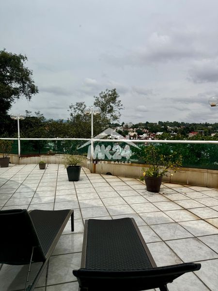 Magnífica residencia con amplísimos y cómodos espacios. A la entrada te fascinarán los enormes pinos y árboles frutales alrededor. Al caminar por el hall recibidor impone la gran amplitud que tienen la sala y el comedor con vista y acceso directo a una enorme terraza; gran cocina integral con desayunador y antecomedor, amplias alacenas, gran estudio o sala de TV, medio baño de visitas, hermosa terraza con vistas panorámicas.