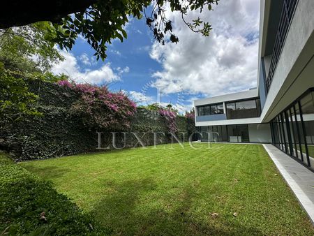 • Esta propiedad tiene dobles alturas en cada uno de sus espacios, integrados de forma perfecta al jardín a través de grandes ventanales que inundan el espacio de luz natural.