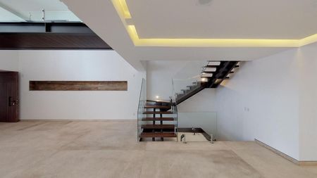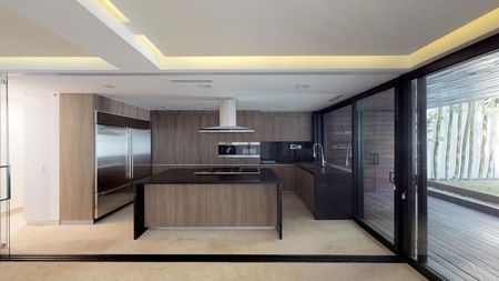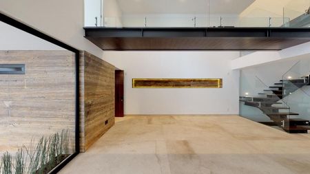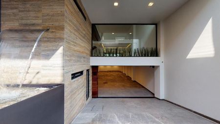 , Family Room, con doble altura, 3 recamaras todas con baño, vestidor y terraza, recámara principal con terraza privada, vestidor con isla en medio baño con dos lavabos, tina y vapor, habitación, contigua, con baño y clóset ideal para salón de usos múltiples, clóset de blancos, estacionamiento para 10 autos, techado , exclusa de seguridad, caseta de vigilancia con baño. Cuarto de servicio para dos personas, área de lavado área de tendido.