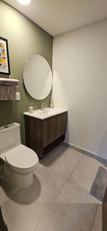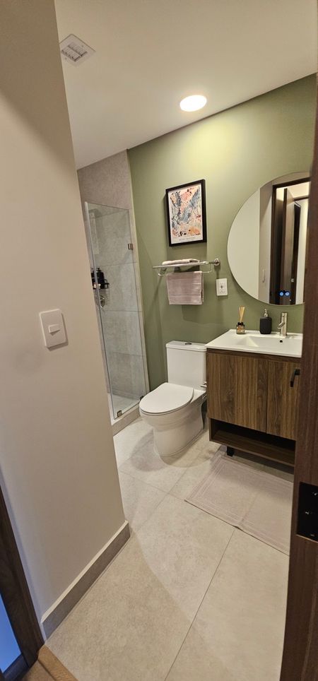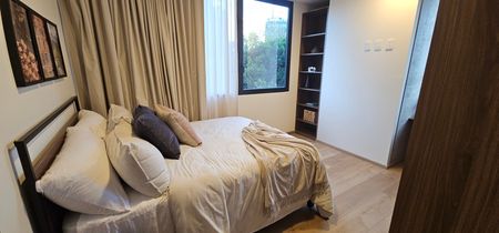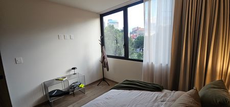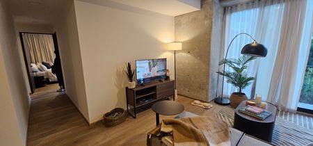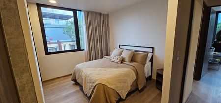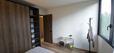 Se entrega equipado con refrigerador, horno de microondas, centro de lavado, horno convencional, estufa de 4 parrillas y persianas
