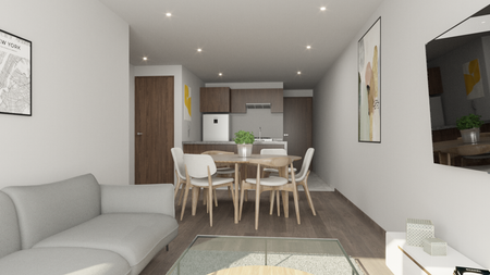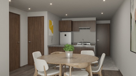 2 recamarasestanciacomedor1 baño completo1 medio bañoBodega1 estacionamientoVigilanciaElevador