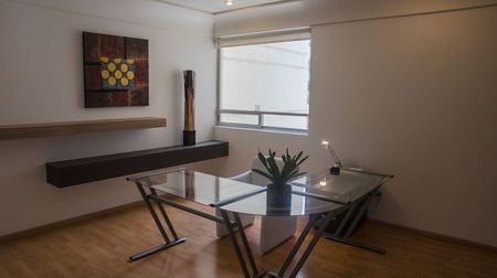 Cuenta con tres habitaciones las tres con baños completos dos de ellas con vestidor, en la recamara principal , estudio, sala de TV bar, cuarto de servicio y lavado integrado estacionamiento para dos autos.