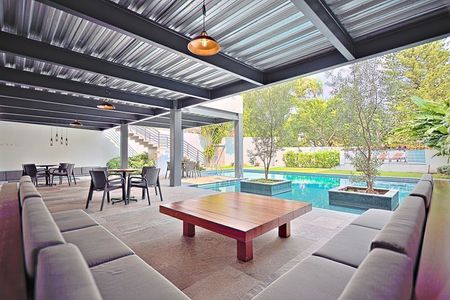 Con más de 2000m2 de áreas comunes, jardines, alberca, jacuzzi, gimnasio, salón de yoga, ludoteca, snack bar, sala de cine, salón de usos múltiples, mesa de billar, área de fogata, juegos infantiles, asador.