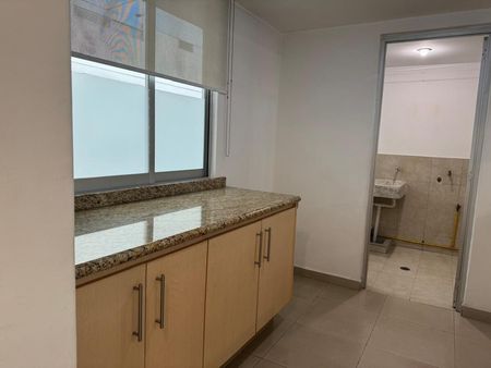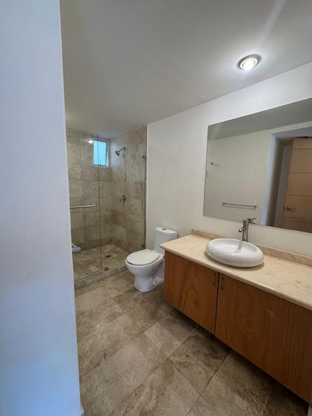 Se distribuye de cocina integral, área de lavado, espacio sala-comedor con muy buena iluminación, 1 recámara con closet y baño completo (el baño tiene 2 accesos; desde área social y recámara). 2 cajones de estacionamiento (1 a nivel de piso y el segundo con elevautos).