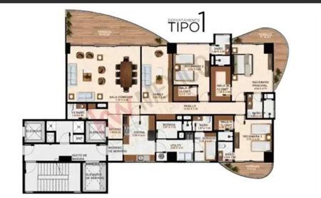 3 Recamaras c/u con baño Completo y vestidor walk in, estudio de tv, sala y comedor independientes,