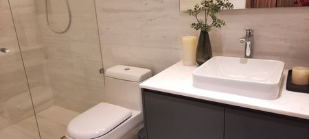3 baños completos , medio baño de visitas, cocina cerrada o abierta, estudio. Departamento en 2 niveles, en la planta alta se encuentra el roof garden privado.