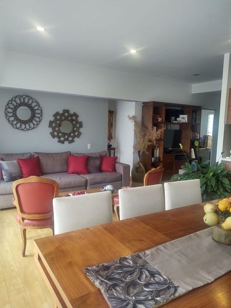 Sala comedor amplia con cocina abierta e inigualable vista al sur poniente de la CDMX.