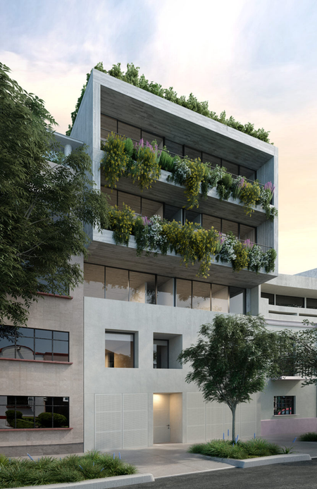 En el corazón de la colonia Narvarte Poniente, en una cuadra que conserva el espíritu urbano de los años cincuenta, nace un edificio que dialoga con la escala urbana y sus vecinos inmediatos. Cuenta con 05 departamentos de 120 a 160m que gozan de patios ajardinados, balcones y azoteas contenidas por vegetación.