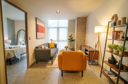 Departamentos en Renta a estrenar tipo LOFT con baño, refrigerador, microondas y persianas.