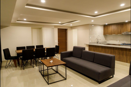 La plantas tipo cuenta con dos habitaciones recamara principal con baño vestidor y terraza, recamara secundaria, sala comedor cocina abierta, baño de visitas, área de servicio, cuarto de servicio.