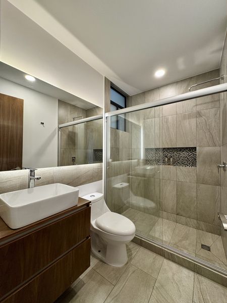 - Pisos de madera de ingeniería de nogal natural en recámaras.