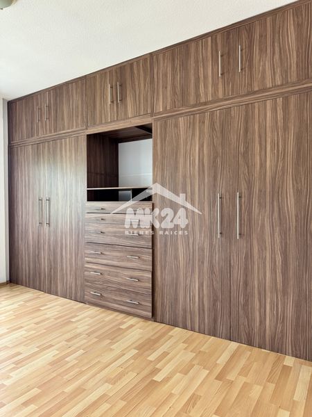 El departamento tiene techos de buena altura, consta de sala comedor muy amplios con ventanales a todo lo ancho , cocina integral, medio baño de visitas, recámara principal con baño completo, segunda recámara con techos altos, tapanco, ventilación natural y baño completo, y el estudio o sala de TV de buen tamaño que puede ser tercer recámara, área de lavandería integrada. El departamento cuenta con un cajón de estacionamiento techado con portón eléctrico. También cuenta con hidroneumático. En total son 19 departamentos.