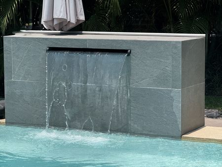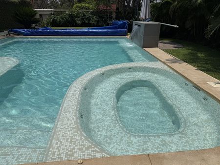 Alberca con jacuzzi y fuente.