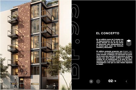 Proyecto edificio: 5 niveles con 10 departamentos de 90 m² (2 por nivel); ubicado en una de las zonas de desarrollo más emblemáticas de la Ciudad, justo entre las colonias Condesa y Escandón.
