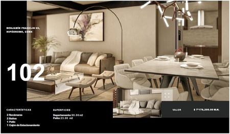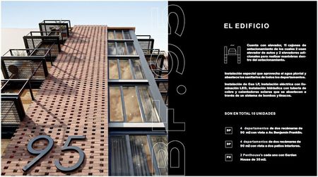 4 departamentos (2 recámaras, 90 m²) con vista a Av. Benjamín Franklin.