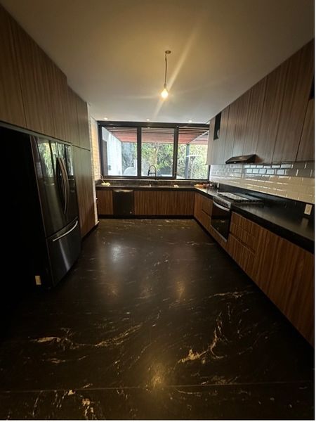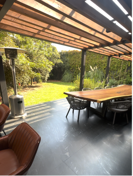 En la planta baja, una sala con chimenea se integra a dos terrazas y un gran jardín rodeado de árboles, ideal para convivir o relajarse. El área social cuenta con barra y horno de pizzas, creando el ambiente perfecto para reuniones. La cocina es amplia y práctica, con área de lavado independiente.