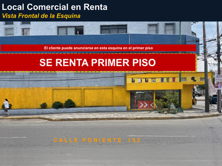 Local Comercial en esquina a pie de calle de 1,470m2 que esta integrado en un solo local.