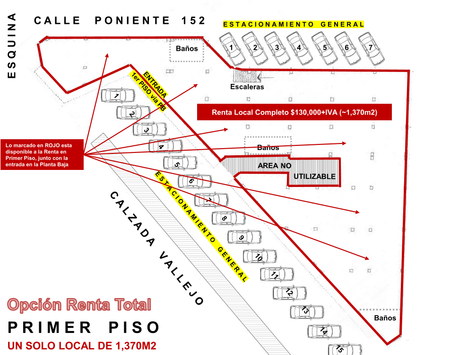 En Primer Piso: Espacio de 1,370m2 que puede rentarse total o parcialmente