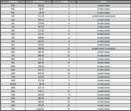 Renta desde: 28.70 m2 hasta 1,168.82 m2