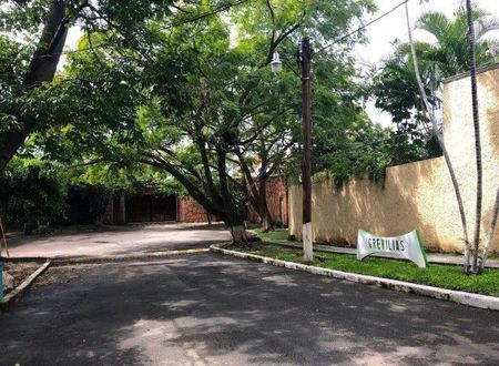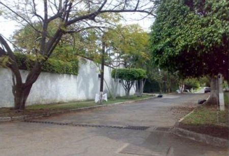 Residencia en polígono con ligera pendiente descendente. Patio de Acceso junto a entrada Principal, cochera descubierta para cuatro autos, vestíbulo recibidor, medio nivel abajo cocina y desayunador, un nivel abajo salón de fiestas, lavandería, cuartos de servicio y baño.