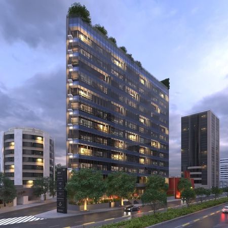 Tiene 9 niveles de estacionamiento en sótanos, la planta baja cuenta con locales comerciales. Sus elevadores son de alta velocidad, valet parking, control de acceso electrónico, Seguridad 24/7, CCT en áreas comunes.