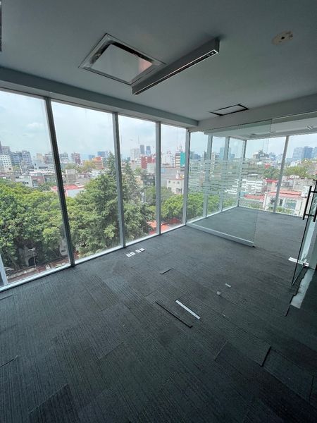 Se renta oficina en corporativo triple A totalmente moderno , la oficina es de 1,330 m2 es un piso completo lo que mide cada planta del corporativo se puede rentar completo o dividir a la mitad cuenta con espacio abierto para ejecutivos y al rededor de la oficina tiene privados , hay sala de juntas , cocineta y baños para hombres y mujeres esos están al exterior de la oficina.