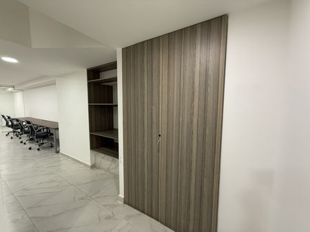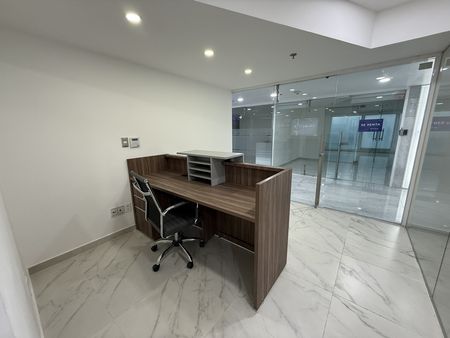 La oficina se encuentra en excelente estado, con pisos de porcelanato y divisiones de cristal templado. Cuenta con 2 privados, área abierta, recepción y sala de juntas, tiene una hermosa terraza privada.