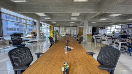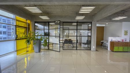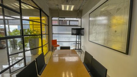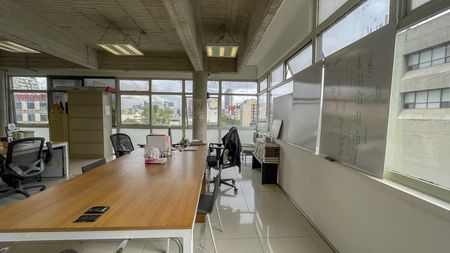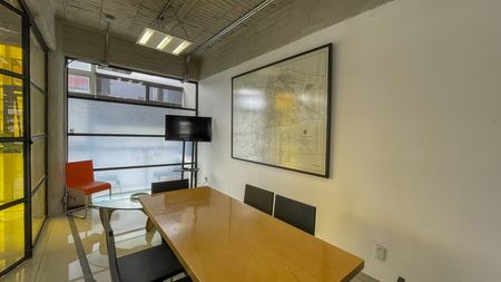 Espacio amplio, iluminado y ventilado, con ventanas de piso a techo. Cuenta con área de staff, oficina privada, sala de juntas, cafetería, baños para hombres y mujeres, lavabos y un lugar de estacionamiento.