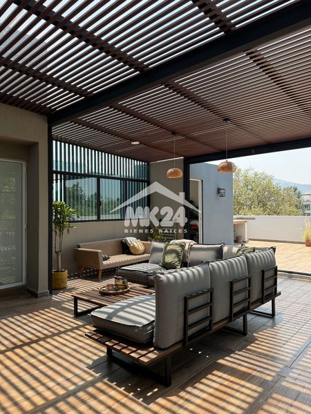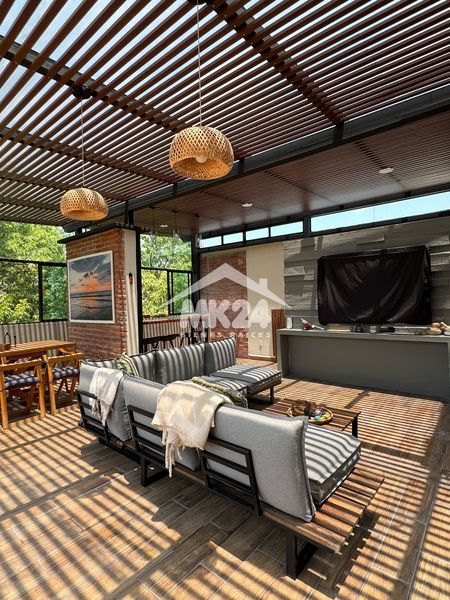 En el siguiente nivel se encuentra el espectacular roof garden privado de 100m2 para disfrutarlo al máximo todos los días con la familia y los amigos. Cuenta con una pérgola de cristal templado, gran sala con pantalla de TV, cocineta, gran explanada y espacios abiertos para deleitarse con los paisajes naturales y pasar momentos muy agradables.