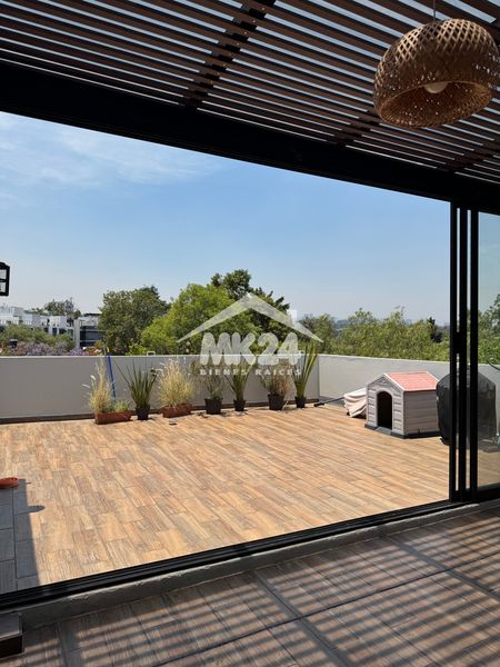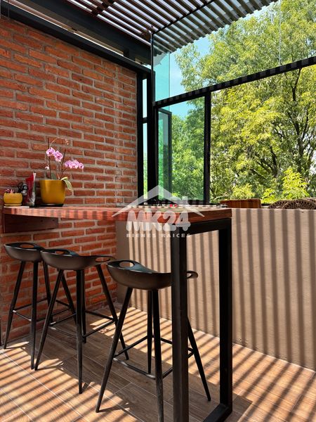 Magnífico Pent-house orientado hacia el área boscosa con hermosas vistas verdes que al instante te conectan con la paz y la naturaleza. Absoluto silencio. Ubicado en el condominio Astoria, a 10 minutos de la supervía poniente y a 15 minutos de Santa Fe.