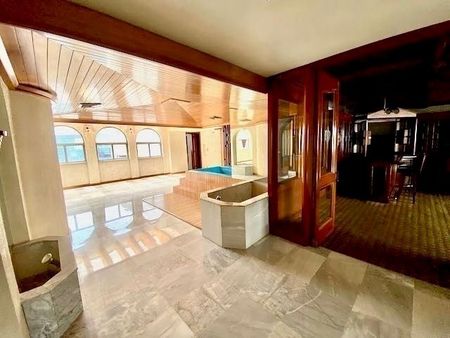 Terraza con sala, jacuzzi, comedor, asador y medio baño, despacho, sala familiar con bar y cava, recamara principal con chimenea, vestidor (walking closet), baño con doble lavabo, bidet, WC, ducha, vapor, sauna, tina romana y área para gimnasio.