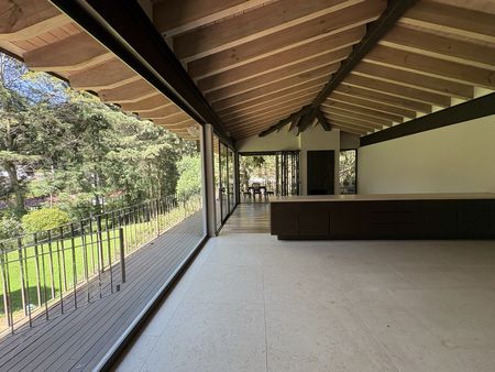Elegante y hermosa casa construida en prácticamente un nivel con vista desde todas las habitaciones y áreas sociales hacia el gran jardín privado.
