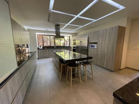 La casa cuenta con un antecomedor para 10 personas con terraza y vista a la cañada, una sala familiar con acceso a la terraza, un centro de trabajo para 8 personas con un ventanal orientado al este para una excelente iluminación, y una cocina amplia con una mesa de trabajo en granito. La cocina está equipada con refrigerador y congelador doble, dos hornos, área de lavado y amplios espacios de almacenamiento. Además, cuenta con una alacena con iluminación y ventilación natural orientada al este. También encontrarás un salón de juegos y bar contiguo a la sala.