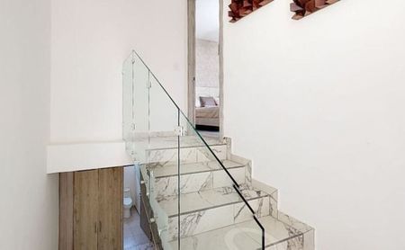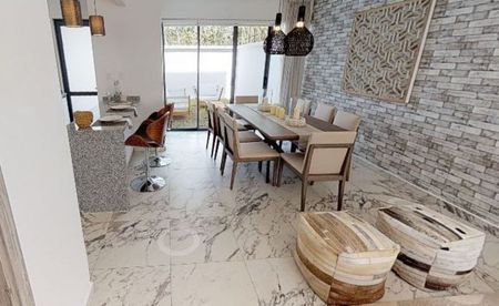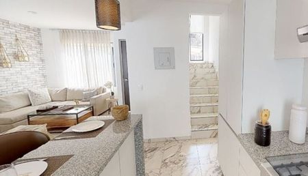Cuenta con una construccion de 123 m2 y un terreno de 108 m2. Doble altura, jardín con terraza, pasillo de servicio, área para centro de lavado, patio de servicio, bodega y estacionamiento.