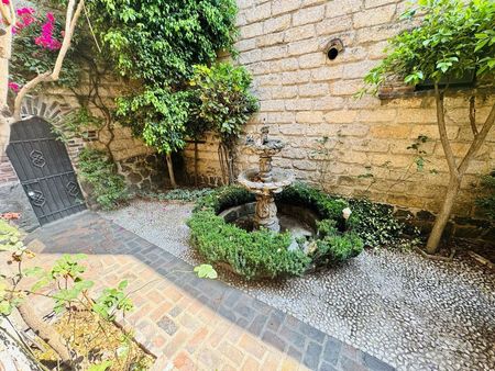 • Dos patios con fuentes y ambientación medieval, perfectos para relajarte y disfrutar de un ambiente inigualable.