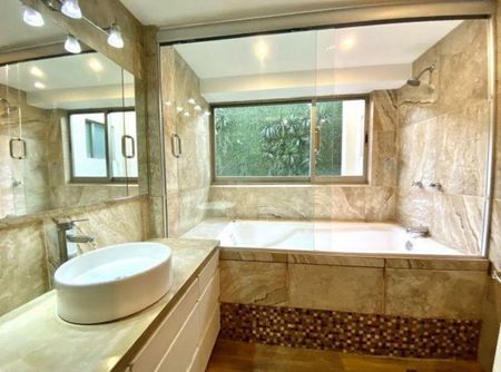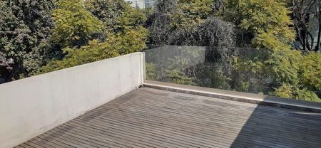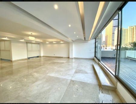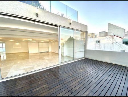 Vendo precioso Penthouse de lujo en calle muy tranquila. Son 551 m2 totales que incluyen 407 m2 de construcción más 144 m2 de terrazas. Distribuídos en 2 niveles, consta de 3 recámaras amplias, cada una con vestidor y baño. Dos de las recámaras cuentan con tina en los baños y la principal tiene terraza. La estancia es muy iluminada con salida a terraza, tiene cava, family room, medio baño de visitas, cocina abierta muy amplia, desayunador, cuarto de lavado, cuarto de servicio, 2 cajones de estacionamiento, roof garden privado. Acabados de lujo, madera y mármol. Además el edificio tiene roof garden común equipado con asador, mesas, sillas, sala con sombrillas, muy acogedor.
