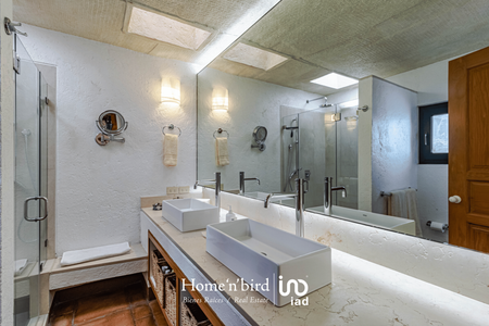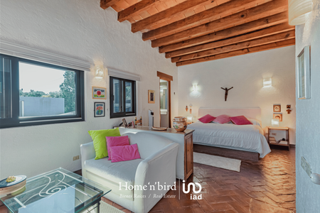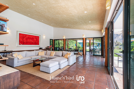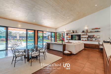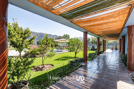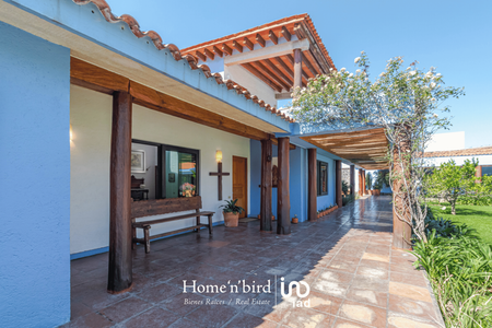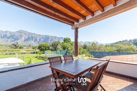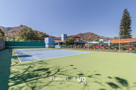 Tepoztlán, pueblo mágico, casa camparan con jardín plano. La construcción en su mayoría, se desarrolla en un nivel. Cuenta con amplia sala-comedor central de doble altura, ventanales completos con la vista inigualable de las montañas que parecen formar parte de la propiedad. Adjunta a la sala-comedor contamos con una terraza abierta perlada con jacuzzi, sala y mesa de juego, al lado de la alberca, explanada con asoleado y mesa comedor. Cancha de tenis.