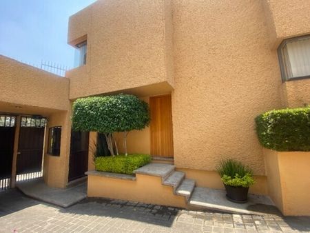CASA CON EXCELENTE UBICACIÓN DENTRO DEL CONDOMINIO DE 6 CASAS CON JARDINCOMÚN Y VIGILANCIA LAS 24 HORAS. Cuenta con vestíbulo, sala con salida al jardín, comedor muy agradable, cocina con desayunador, agogedora sala de tv, 3 recámaras, la principal con baño y vestidor y las otras dos con closet y comparten baño intermedio, cuarto de servicio y de lavado, y 2 estacionamientos con opción a uno tercero.