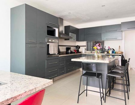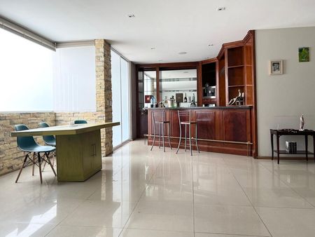 PRECIOSA CASA EN CONDOMINIO DE SOLO 6 CASAS CON PROYECTO FUNCIONAL, CON ESPACIOS MUY GENEROSOS Y MUY ILUMINADA. En planta baja cuenta con vestíbulo, salón de usos múltiples con barra, estudio y sala de tv, habitación secundaria con baño y salida a hermosa terraza privada, gran sala y comedor , cocina integral de gran tamaño, antecomedor con salida a terraza. En planta alta, recámara principal con baño, vestidor y agradable balcón, dos recámaras más secundarias con vestidor y baño cada una. Cuenta también con Roof Garden para disfrutar en familia y amigos con baño. Área de lavado y cuarto de servicio, 4 estacionamientos techados, estacionamiento de visitas y el condominio cuenta con vigilancia las 24 hrs.