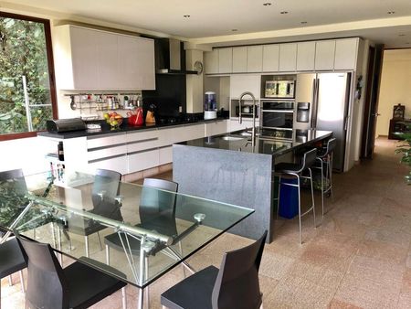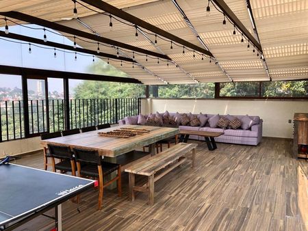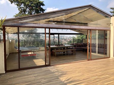 Venta de excelente casa en condominio desplantada en 3 niveles más rooftop privado con vista inigualable al bosque y al skyline de Santa Fe.