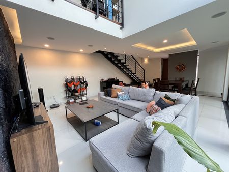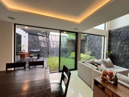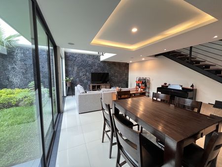 Con 3 recámaras y cada una con baño completo, jardín, terraza, family room, cuarto de servicio y ¡más!; esta casa ha sido diseñada para disfrutar de comodidad y privacidad en cada área. La distribución es perfecta para una vida familiar o recibir invitados en un ambiente acogedor.