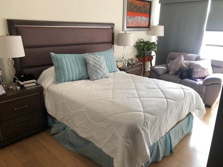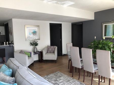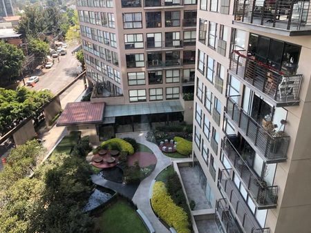 En Be Grand San Ángel, en piso 7 con vista a la ciudad. Consta de sala-comedor, cocina abierta, área de lavado, recámara principal con baño y vestidor, sala de tv con baño que comparte con área social (puede ser 2da recámara) y 2 estacionamientos. El condominio cuenta con estricta vigilancia, alberca techada, gimnasio equipado, área de mascotas, área cerrada para niños, sala de lectura, salón de eventos y áreas jardinadas.