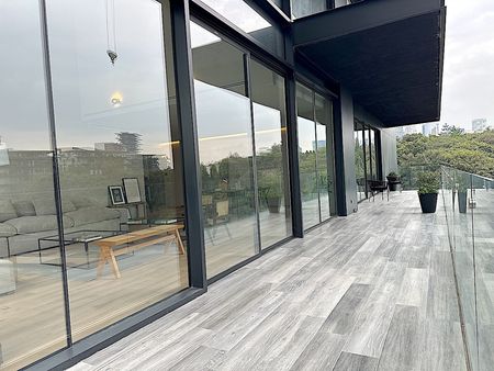 Este departamento de 283.23 m2 habitables rodeado por 122 m2 de terrazas se encuentra en el exclusivo residencial ALCADA diseñado por el reconocido arquitecto Fernando de Haro con la firma Abax, y el prestigiado desarrollador Caabsa ubicado en Cumbres de Santa Fe, de los fraccionamientos mas seguros, con bellos paisajes y gran infraestructura de la CDMX.