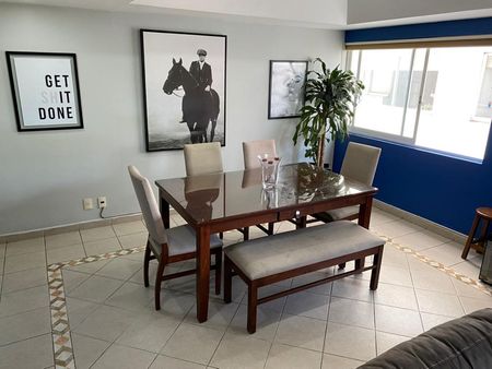 3 habitaciones, la principal co cuenta con walking closet, baño con tina y regadera, las otras dos habitaciones comparten baño completo junto con el área social, cocina equipada, cuarto de servicio con baño.