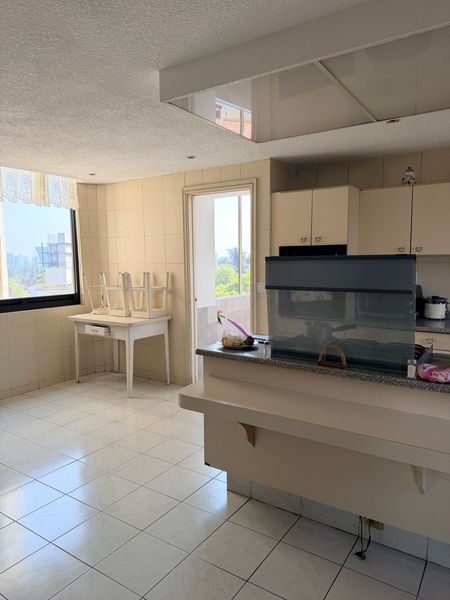 El departamento cuenta con 373 m², distribuidos en amplia, sala, comedor, cocina, cuarto de servicio, cuarto de lavado, espacio de cuarto de televisión y antecomedor, tres amplias recámaras con vestidor y baño, tres estacionamientos y de áreas comunes. Cuenta con gimnasio y salón de fiesta, seguridad Privada, a las 24 horas y la ubicación magnífica.